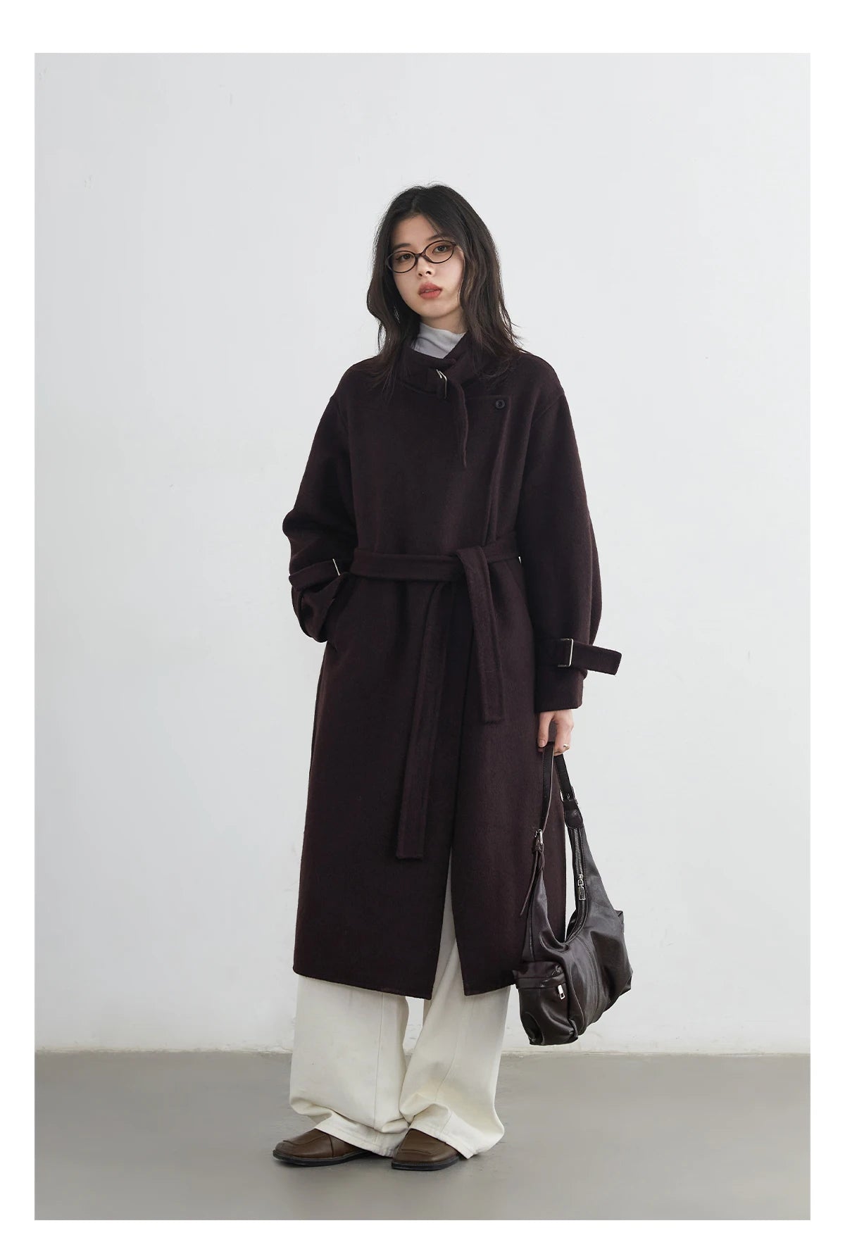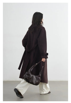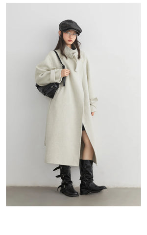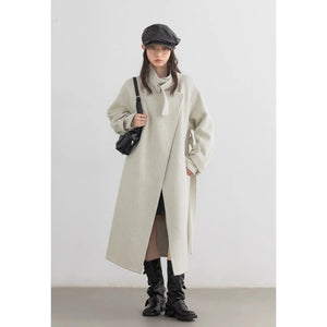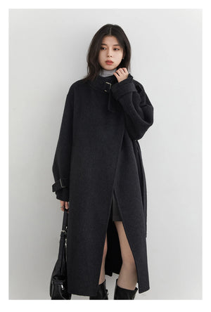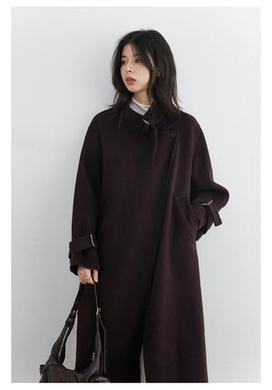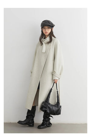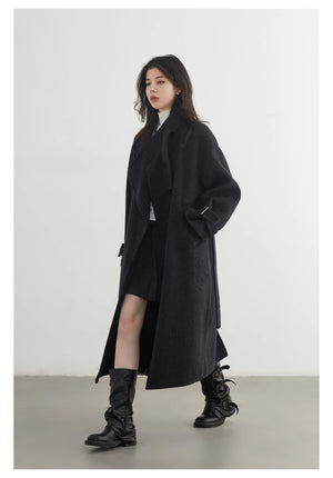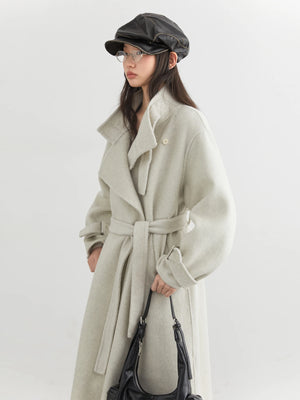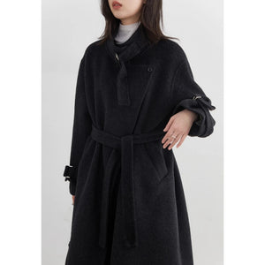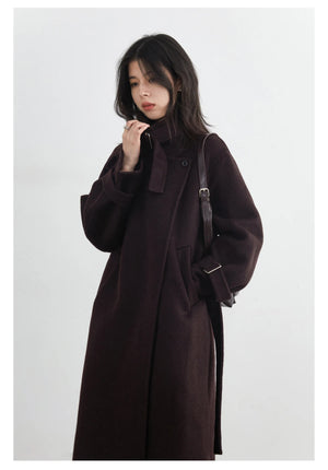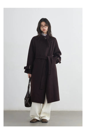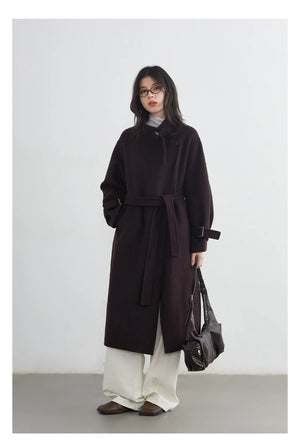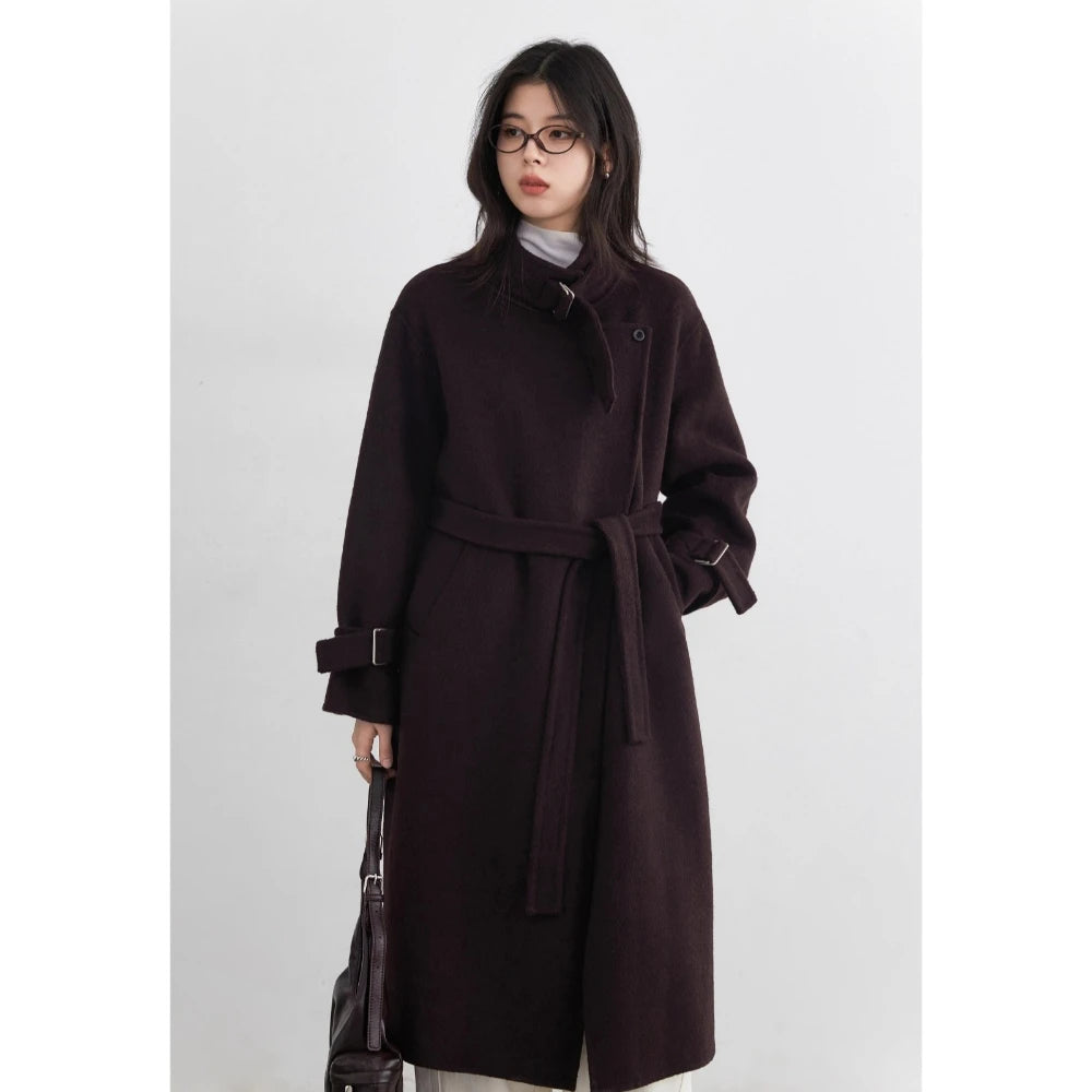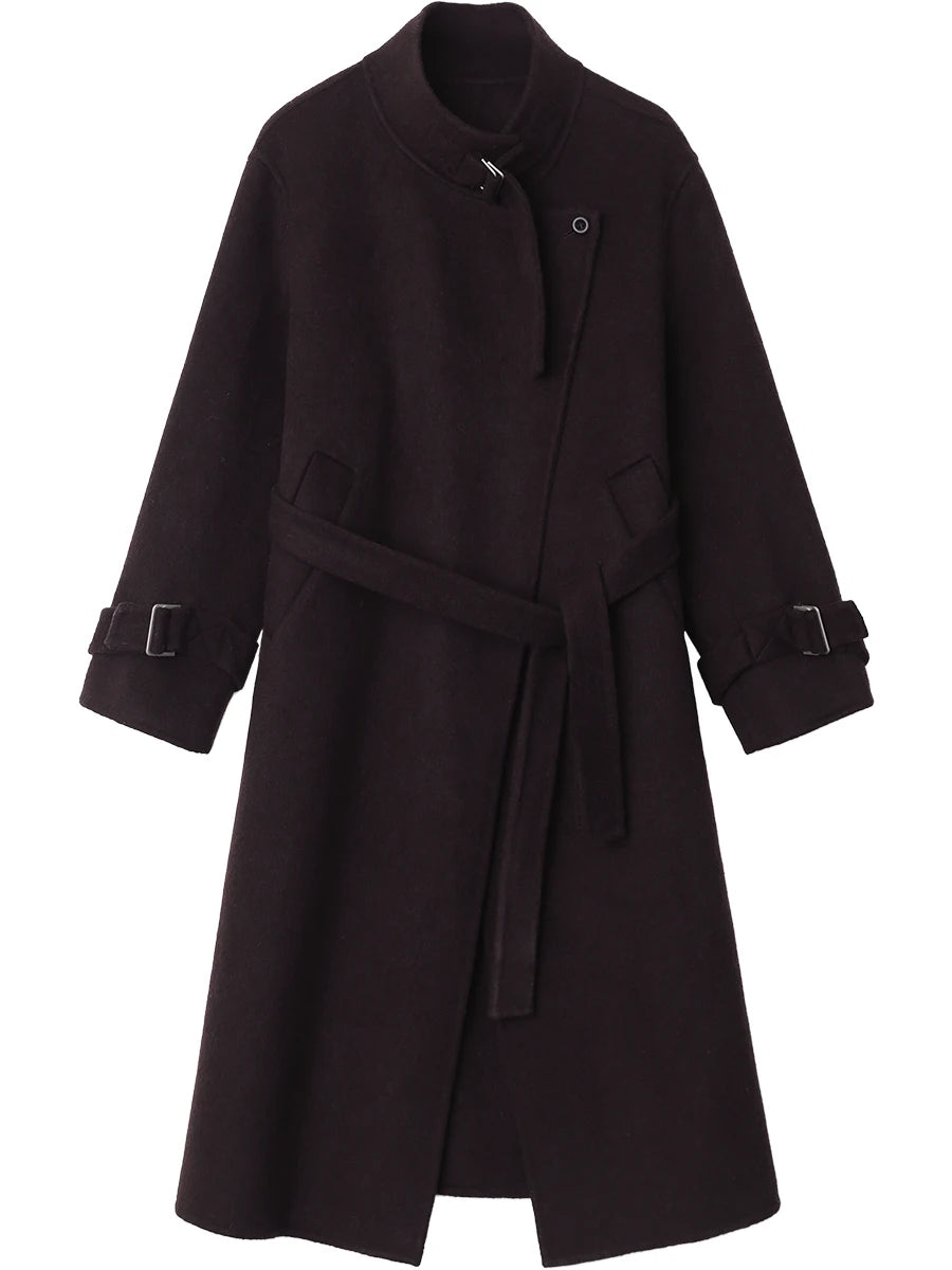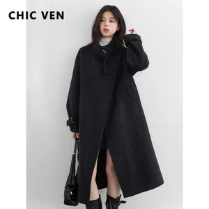 CHIC VEN Fashion Women Long Woolen Coats Stand Collar Double-sided Office Ladies Warm Overcoat Belt Autumn Winter 2025 Outerwear