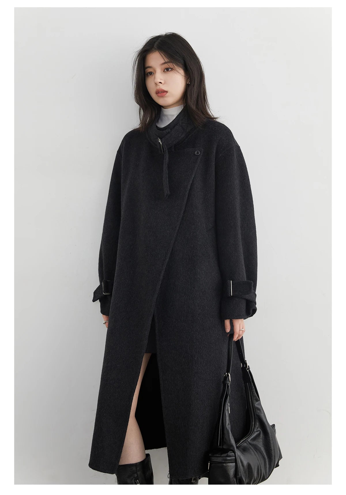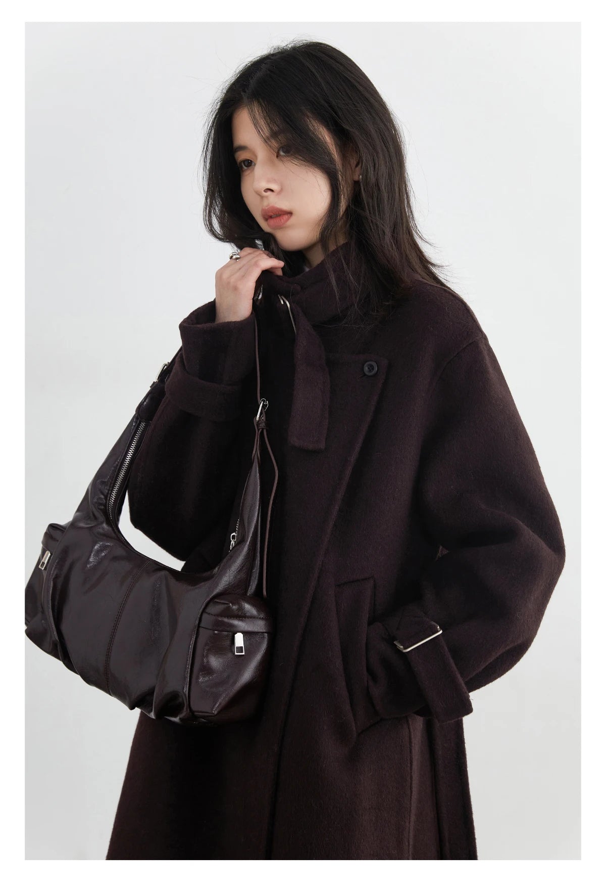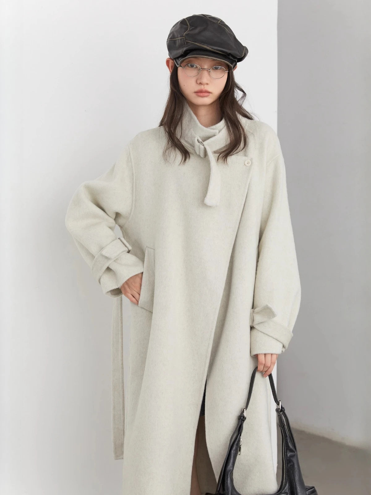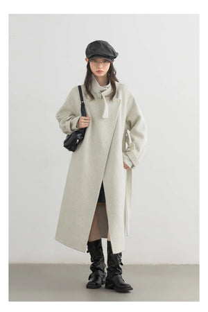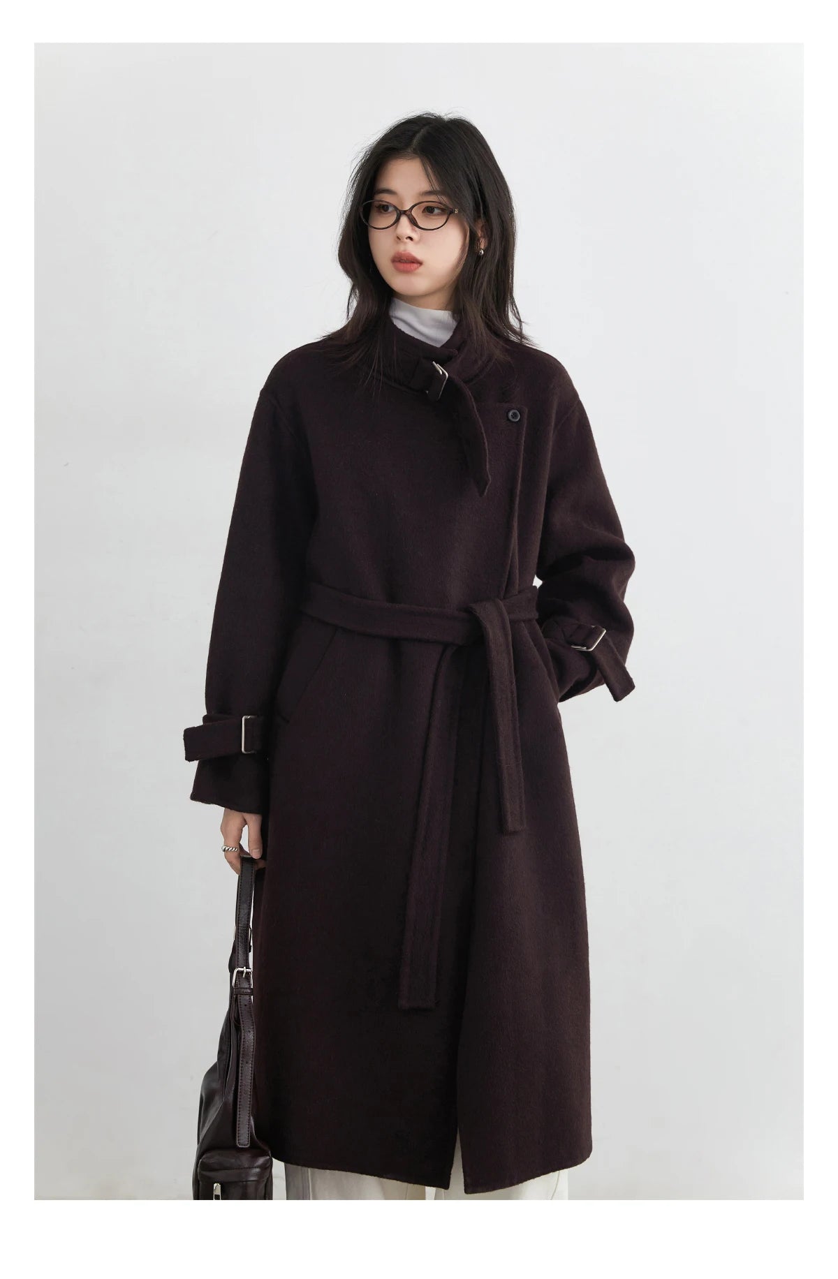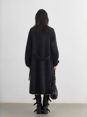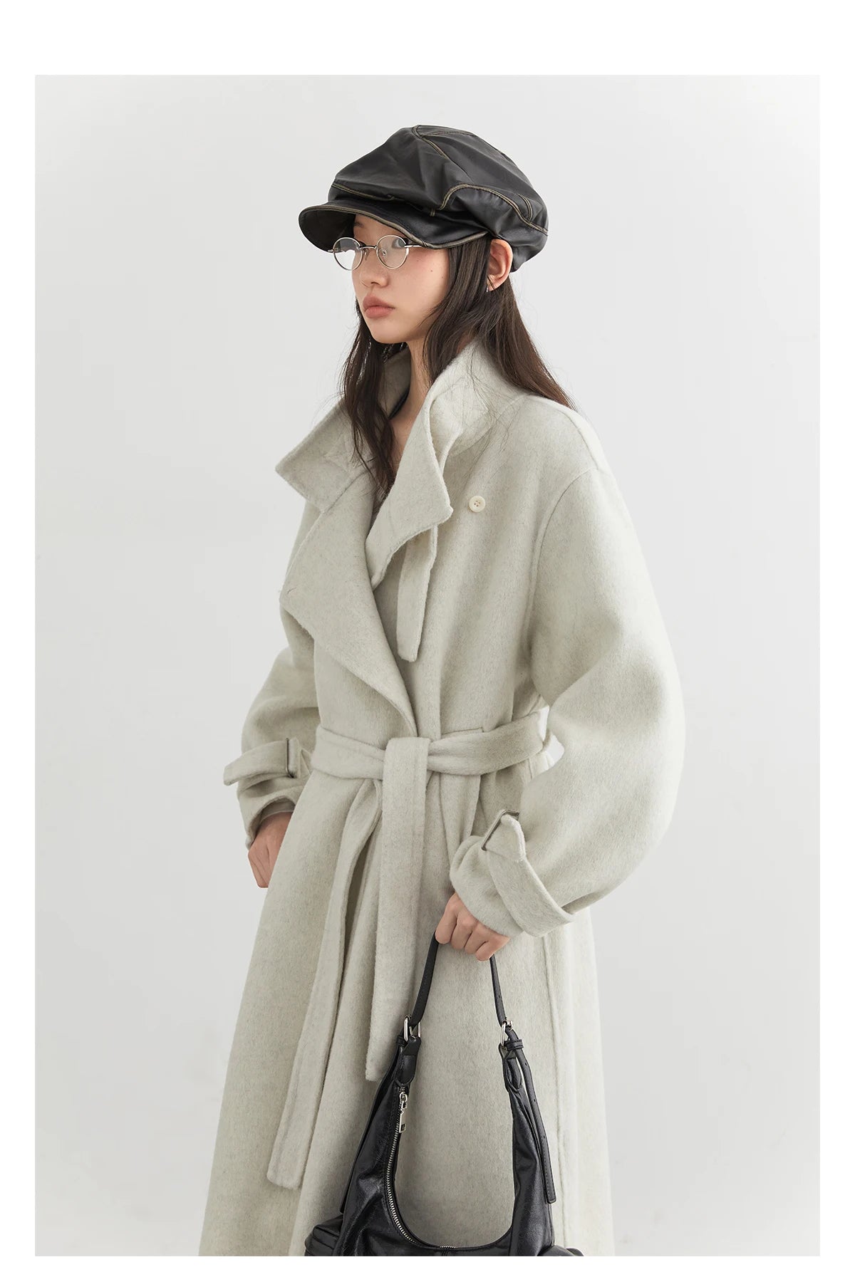 CHIC VEN Fashion Women Long Woolen Coats Stand Collar Double-sided Office Ladies Warm Overcoat Belt Autumn Winter 2025 Outerwear