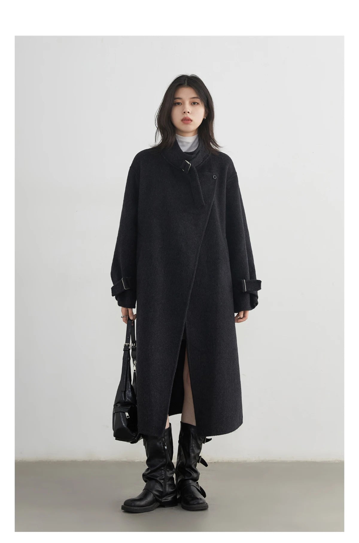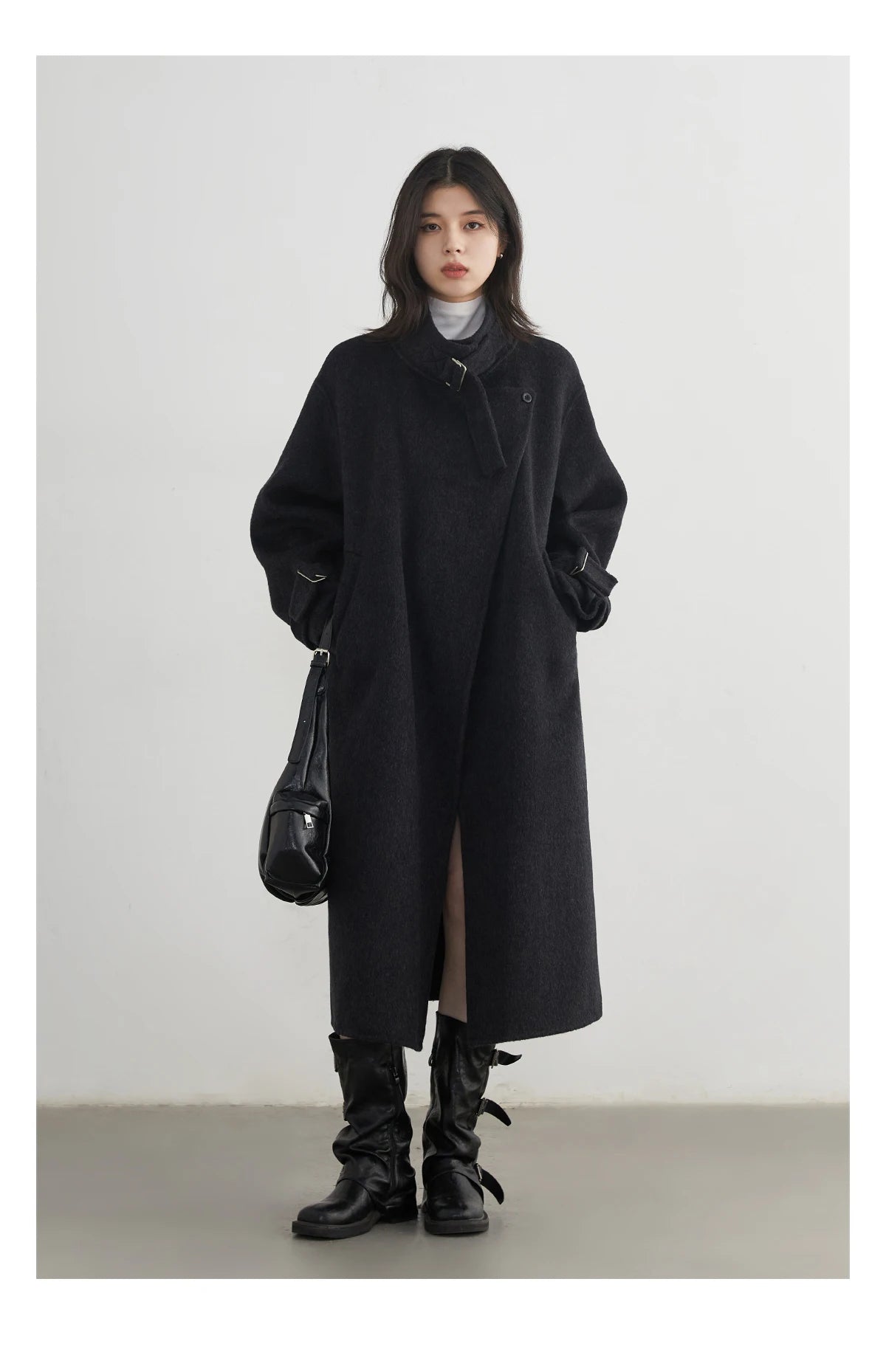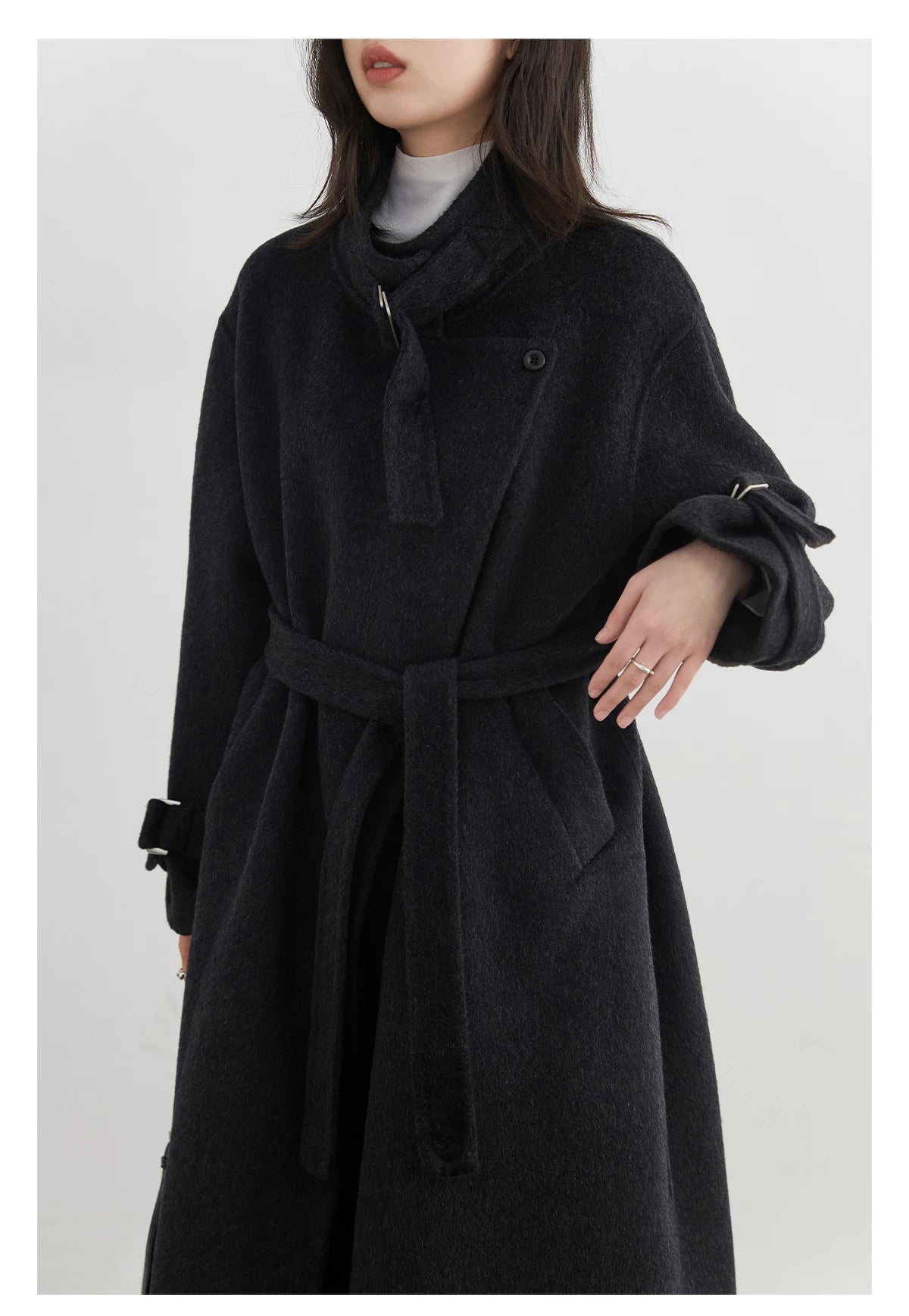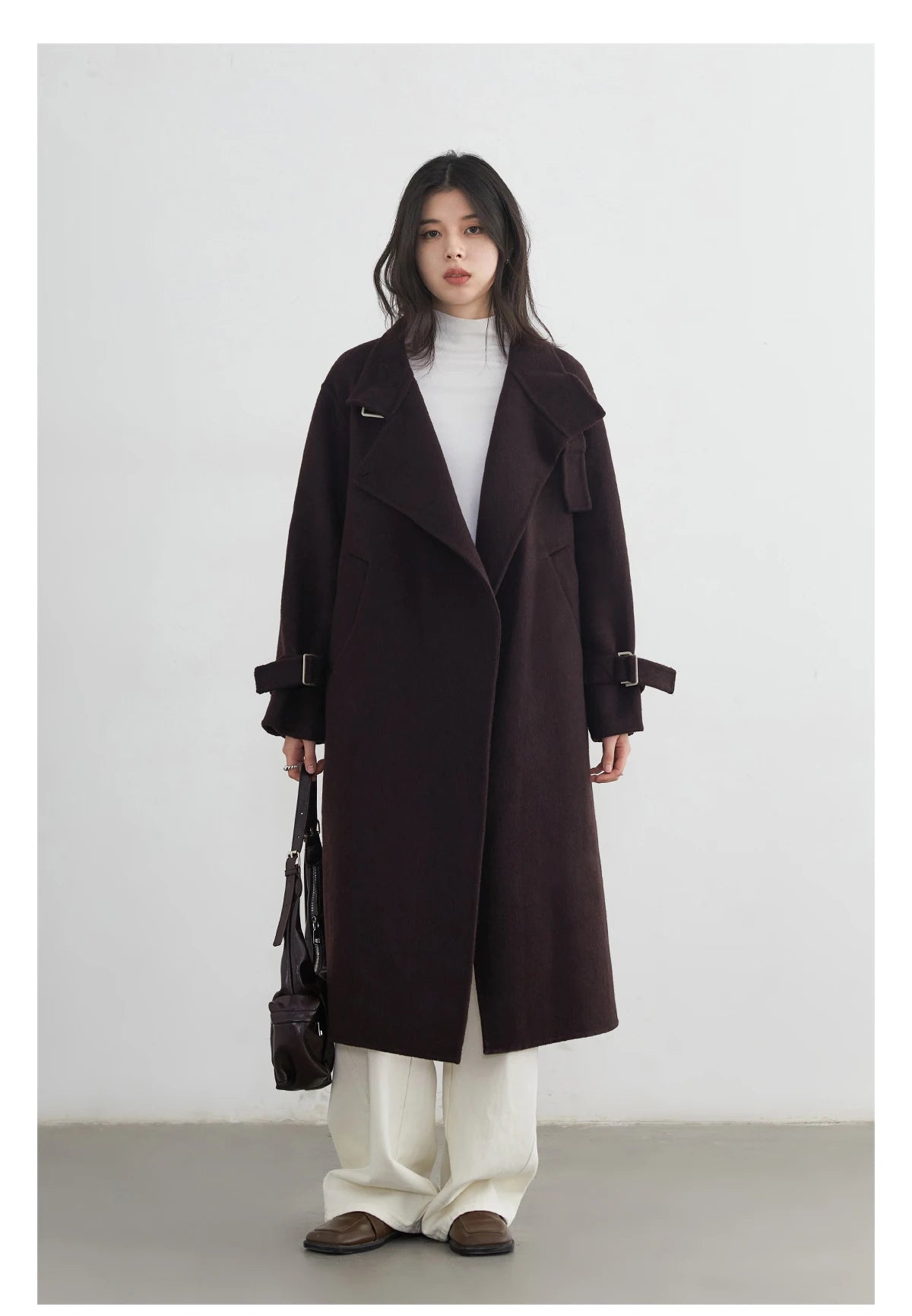 CHIC VEN Fashion Women Long Woolen Coats Stand Collar Double-sided Office Ladies Warm Overcoat Belt Autumn Winter 2025 Outerwear