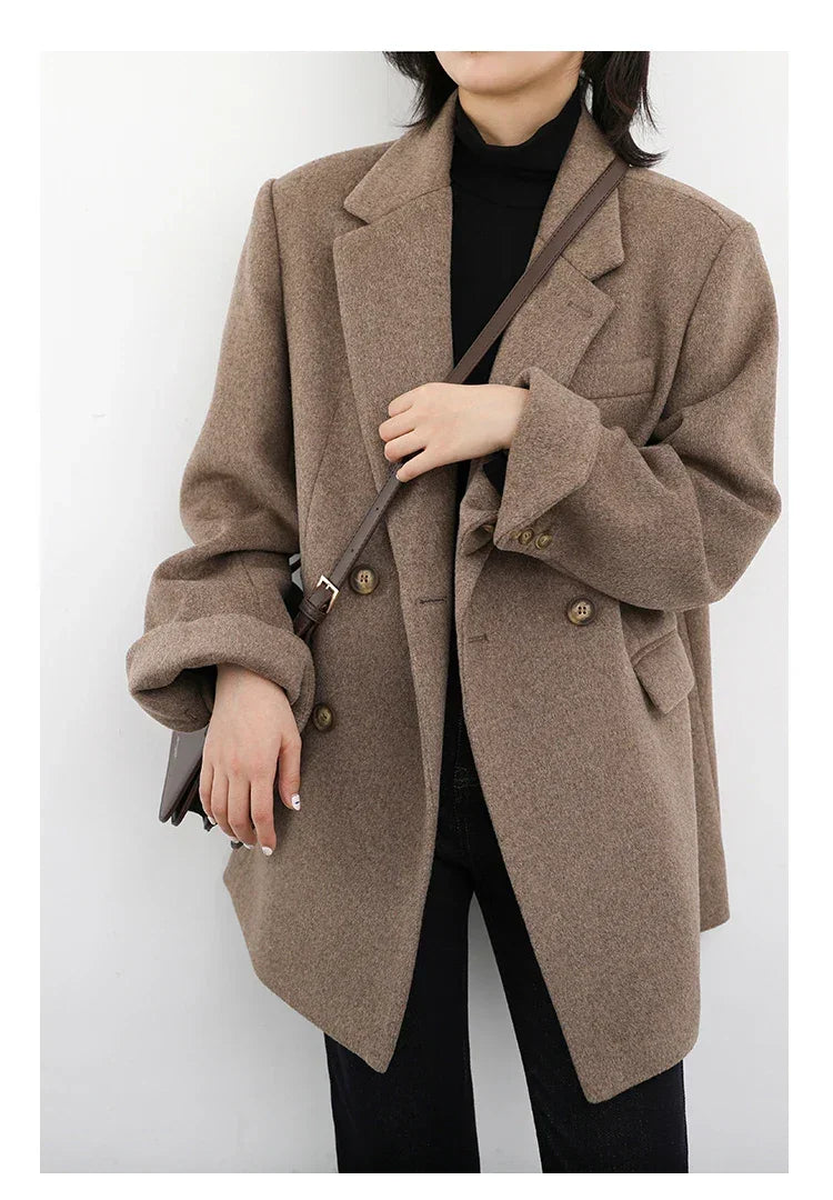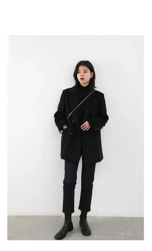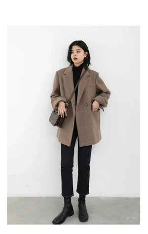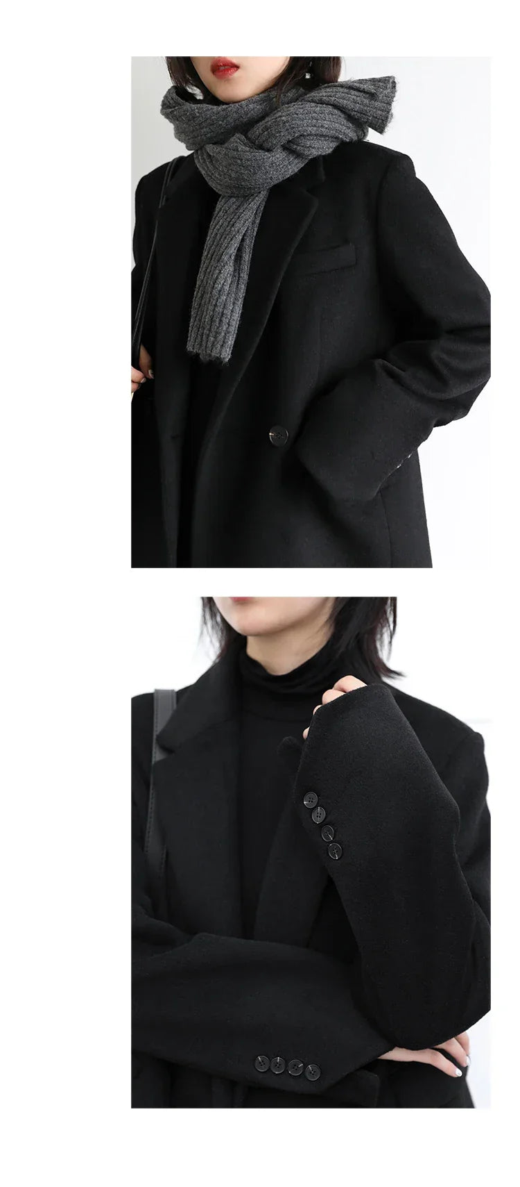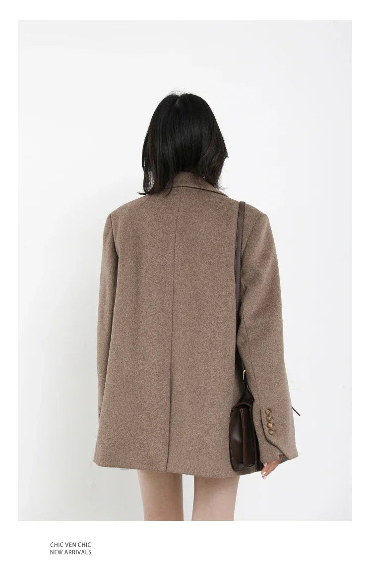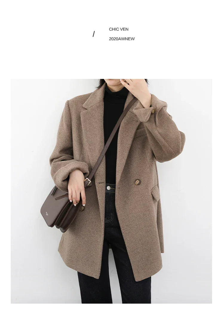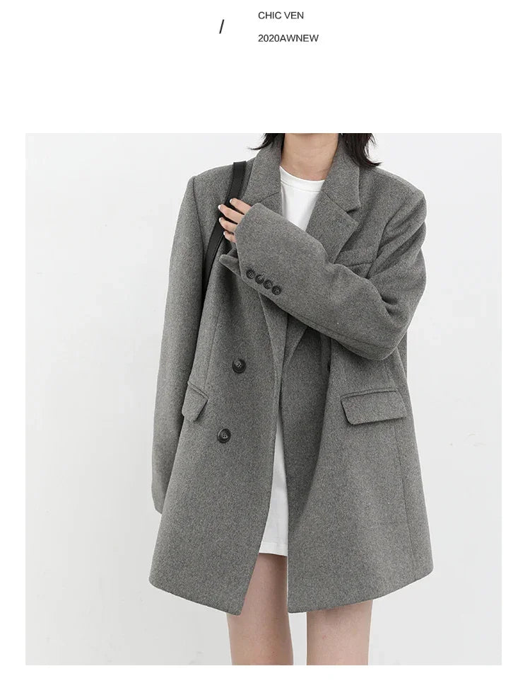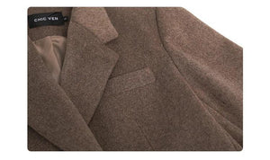 CHIC VEN Women Wool Blend Coat Solid Mid Long Woolen Blazer Thick Warm Blouse Women's Overcoat Office Lady Tops Autumn Winter