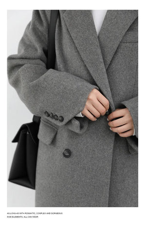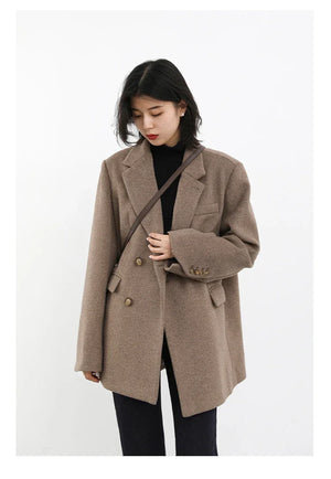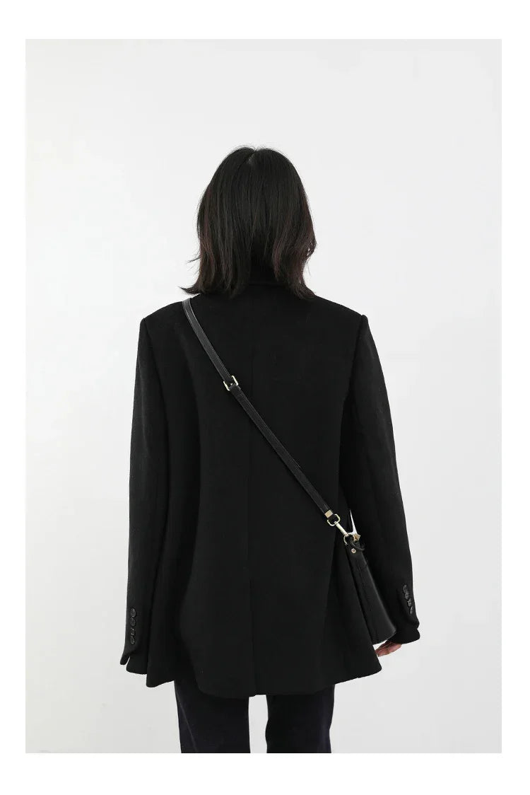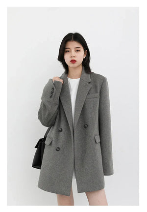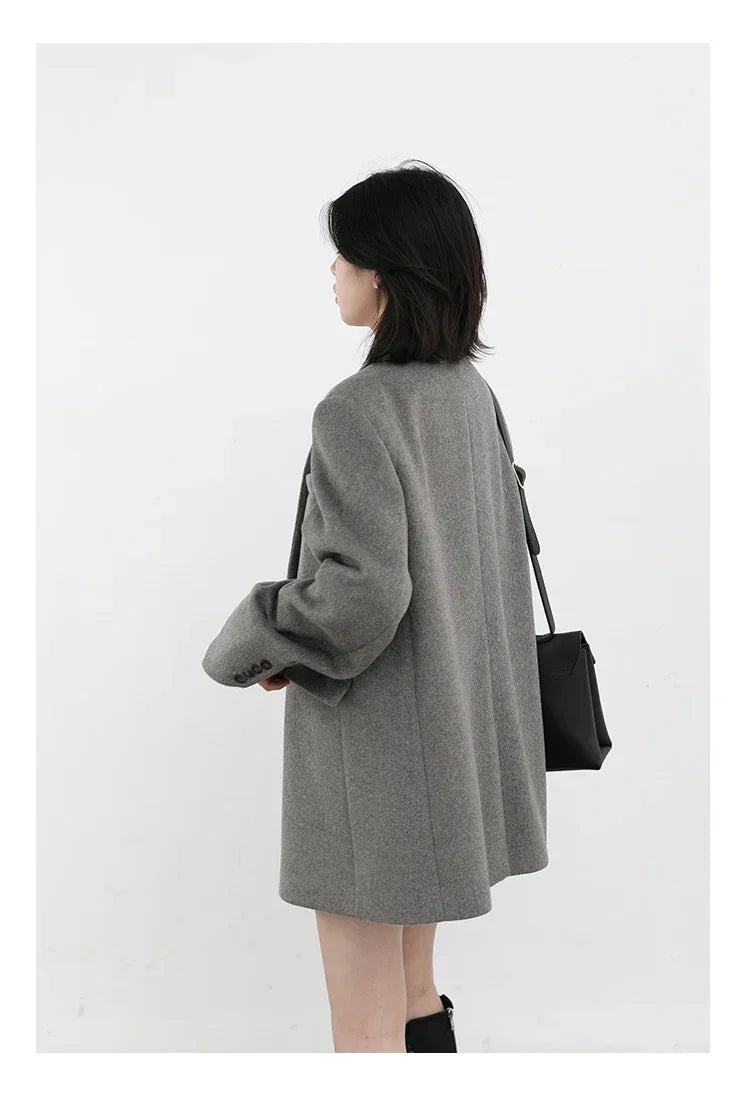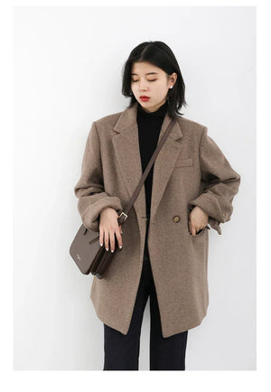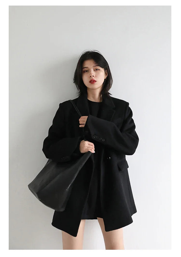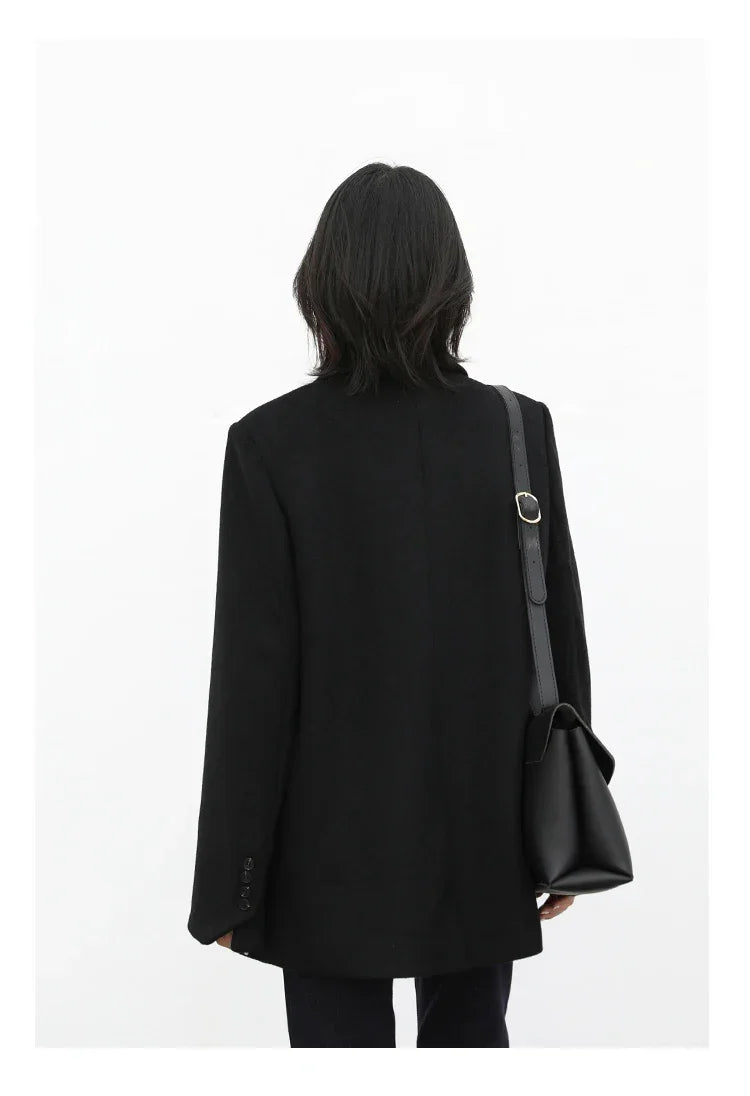 CHIC VEN Women Wool Blend Coat Solid Mid Long Woolen Blazer Thick Warm Blouse Women's Overcoat Office Lady Tops Autumn Winter