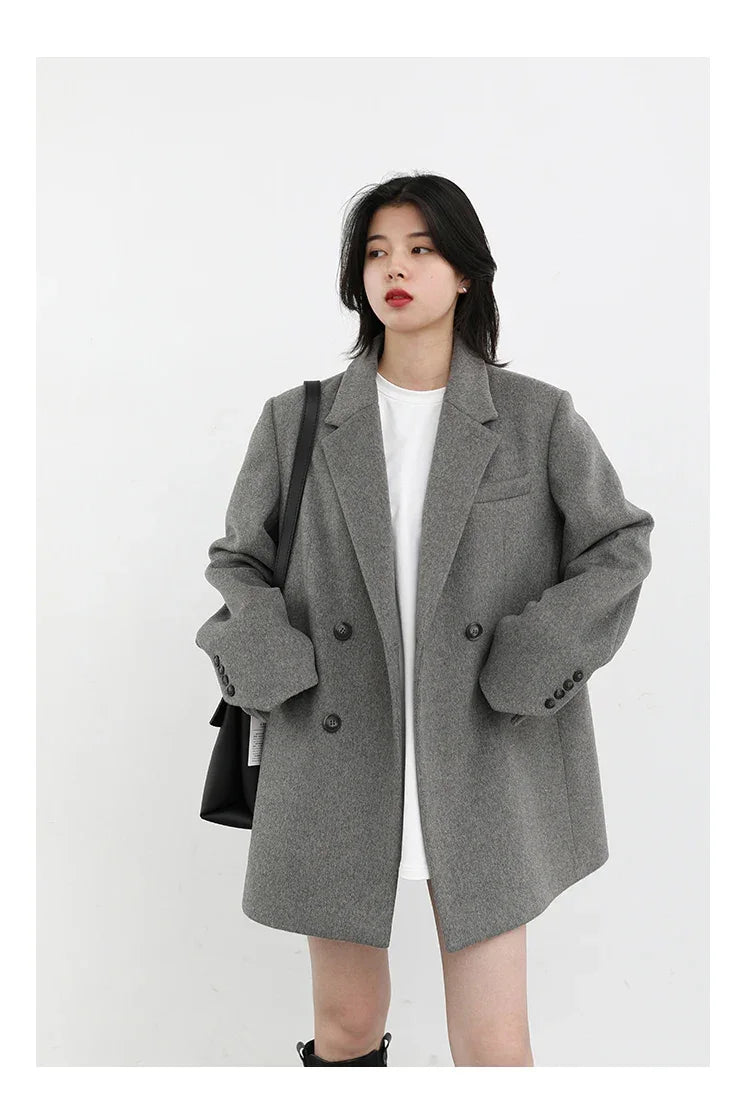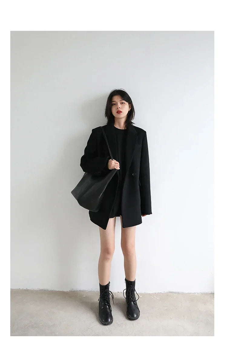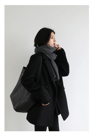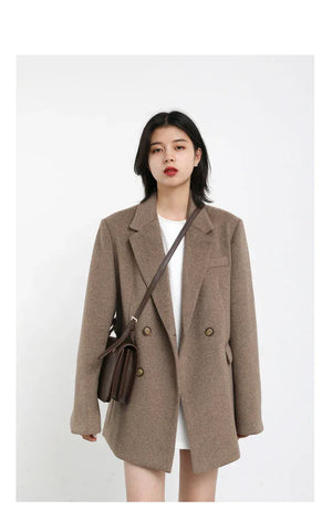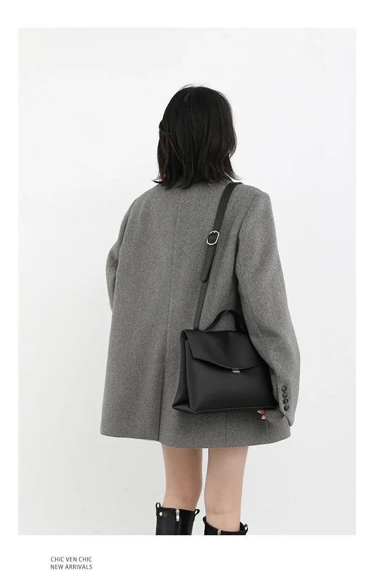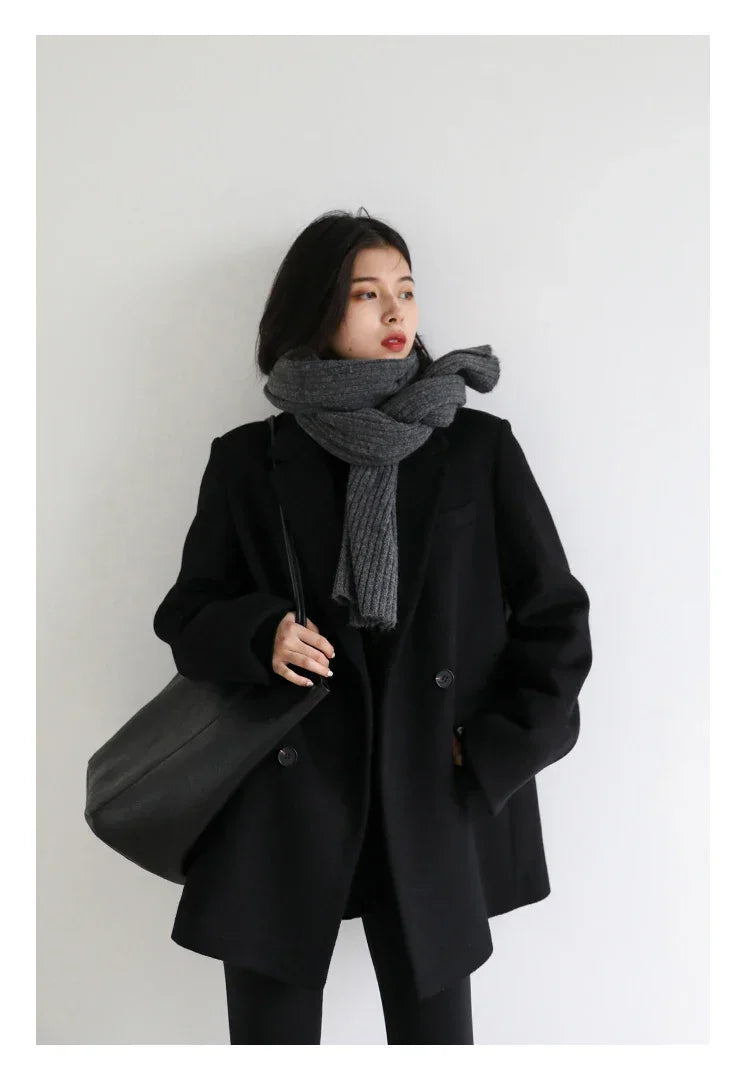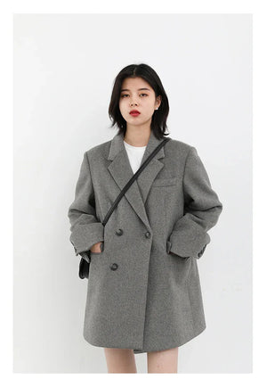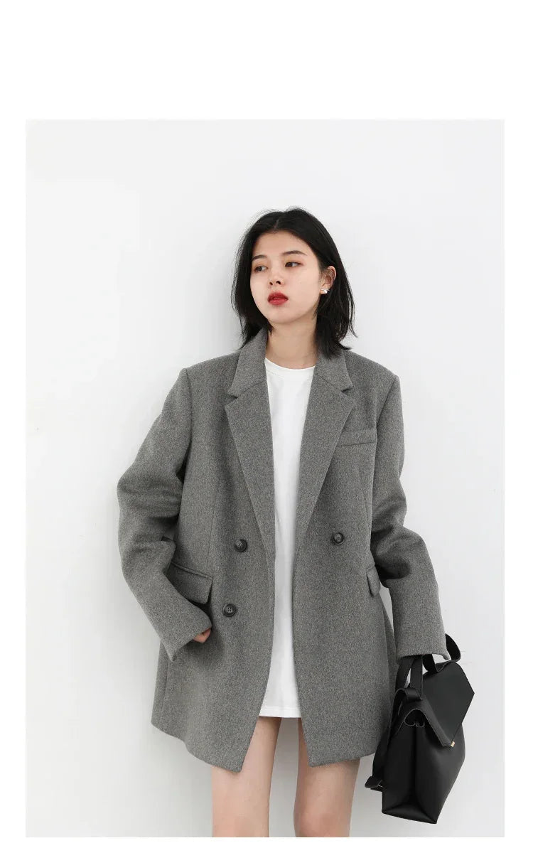 CHIC VEN Women Wool Blend Coat Solid Mid Long Woolen Blazer Thick Warm Blouse Women's Overcoat Office Lady Tops Autumn Winter