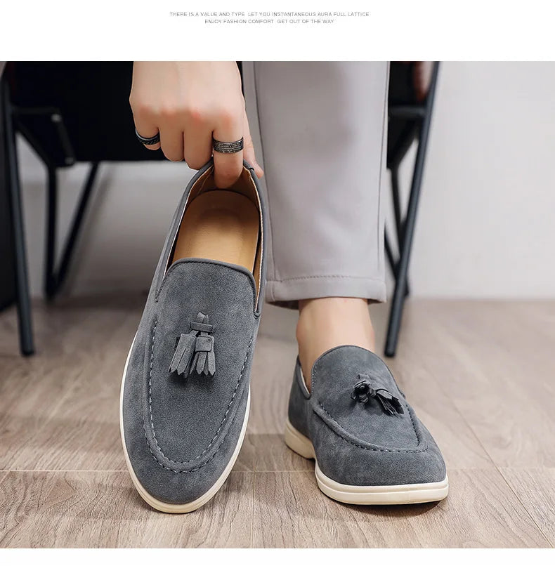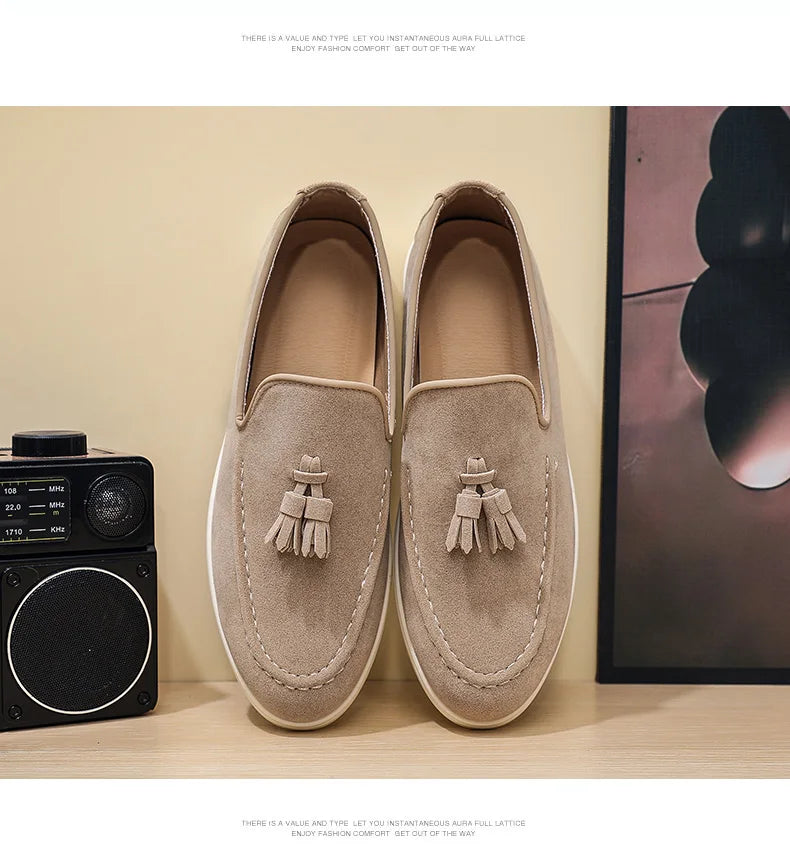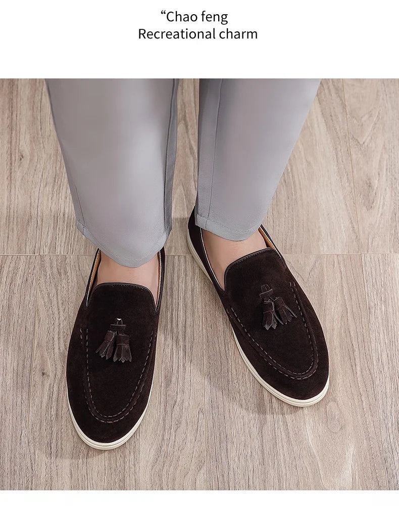 Suede Leather Tassel Loafers – British Classic Driving Style