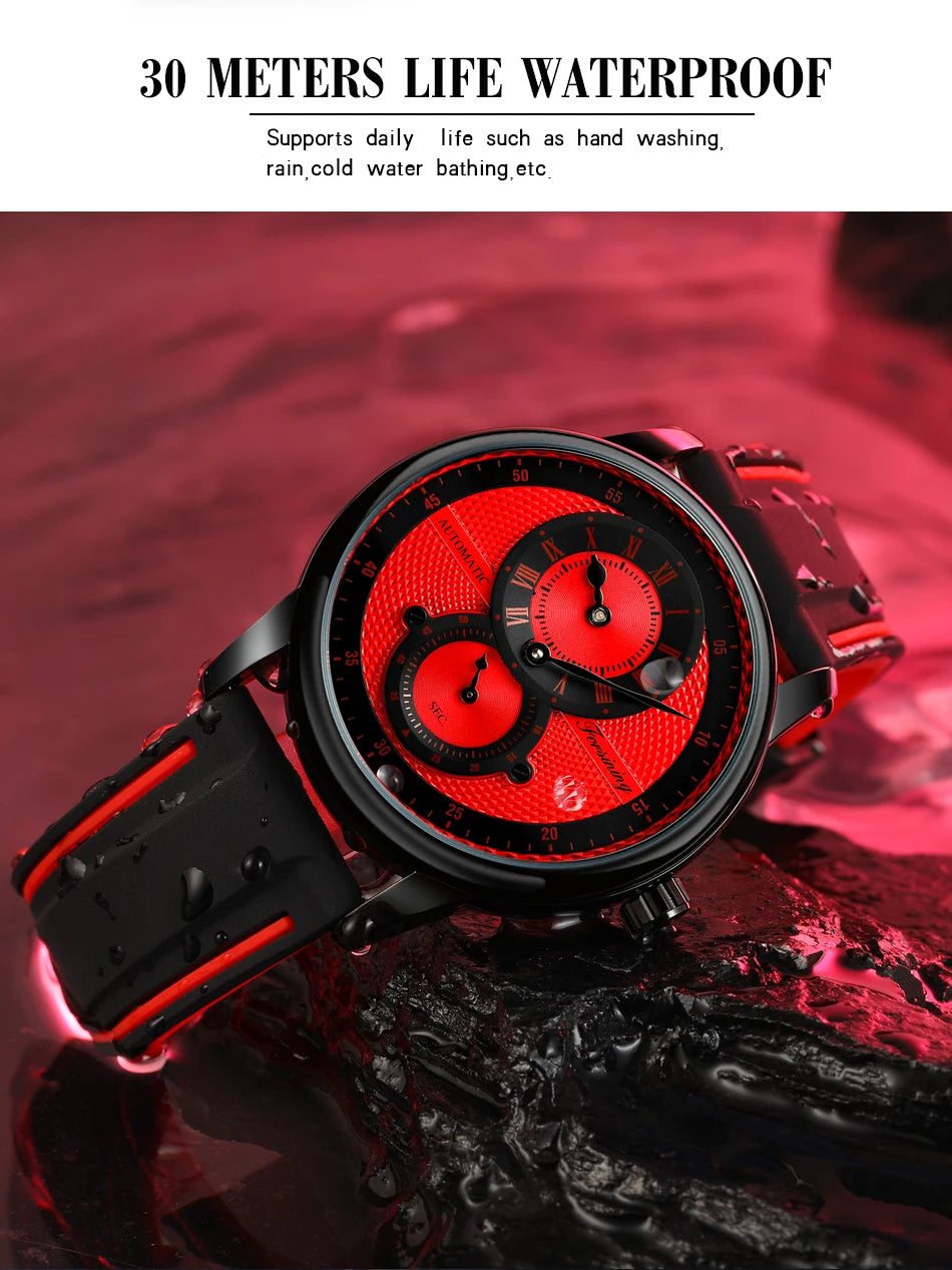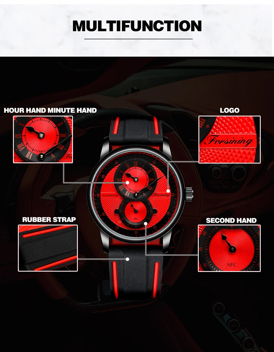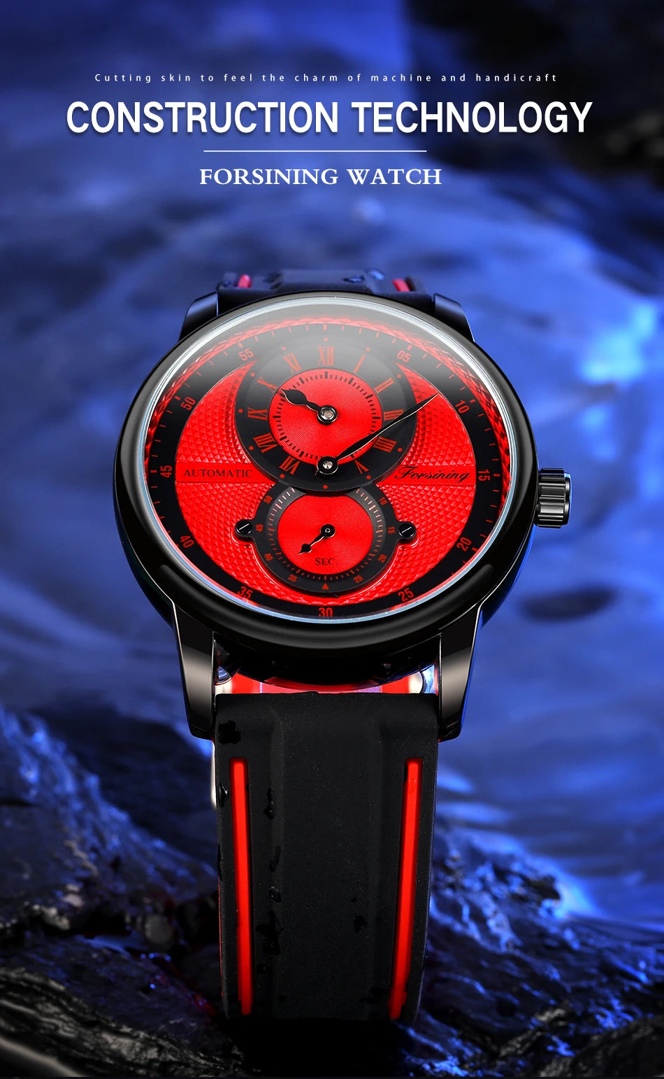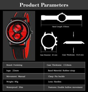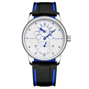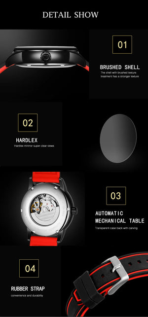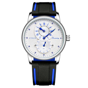 Men Wristwatch Blue White Dial Automatic Transparent Mechanical Watch Silicone Rubber Band Male Sport Clock Relogio Masculino