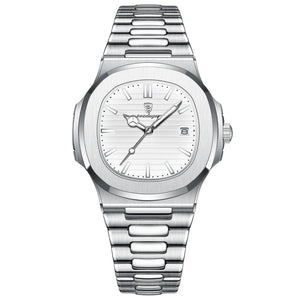 POEDAGAR Square Luxury Men Wristwatch Waterproof Luminous Date Stainless Steel Male Clock Business Sports Quartz Watches For Men